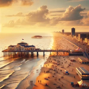スケベニンゲンには、多くの観光スポットがあります。最も有名なのは美しいビーチで、年間を通して多くの観光客が訪れます。特に夏季には、サーフィンやビーチバレーを楽しむ若者たちで賑わい、家族連れもリラックスした時間を過ごせます。また、海沿いには美しい桟橋もあり、散歩を楽しむには絶好のスポットです。