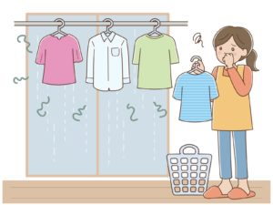 さらに、室内干しの場合、空気の流れが悪いと乾燥が遅れ、