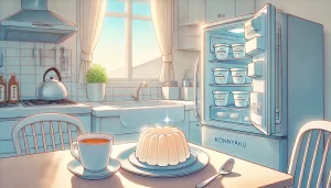 冷凍庫ではなく冷蔵庫で1〜2時間ほど冷やすだけでも、こんにゃくゼリーはしっかりと冷たくなり、食感もなめらかなまま楽しめます。この方法なら、ゼリーがカチカチに凍ってしまうことがないため、硬くなりすぎてしまう心配もありません。